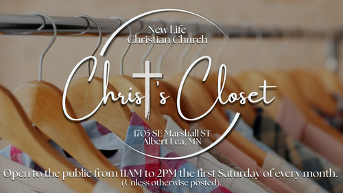 Christ's Closet Ministry opens our church to the community, providing free clothing to families in need. Every item is generously donated by our community - a true blessing to us all! This ministry is a reflection of God's love in action, meeting practical needs while sharing His hope. Together, we're making a difference - one garment, one heart at a time.